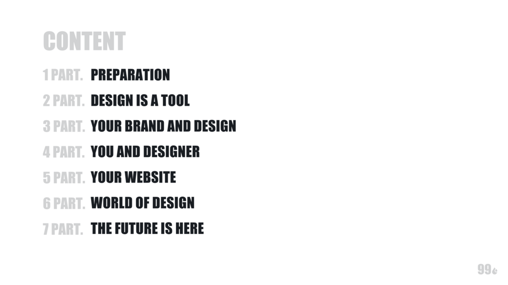 In this short book, I've compiled 99 tips that I want to share with entrepreneurs, teams, freelancers - anyone who works and will work with designers. These tips will help you better understand the world of design, designers, and may give you new ideas to improve your business.